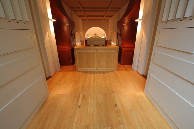 The disposition of the Schwellwerk and the whole voicing concept is a further development of the original instrument, as can also be found in the later works of the Führer firm. Thanks to a re-designed and progressive-acting wind system, our experienced voicer, Reiner Janke, has been able to create a lively, harmonically complete North German-influenced ensemble.